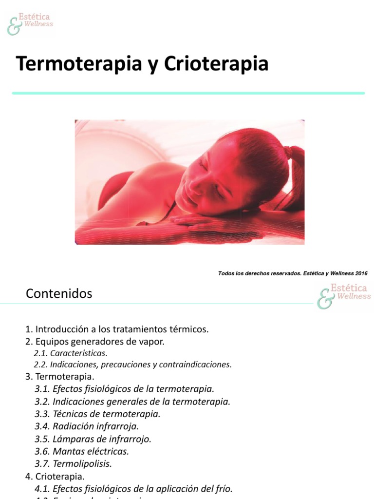 La criosauna es un equipo en el cual introducimos todo el cuerpo excepto la cabeza. La criosauna es el aparato más conocido que se utiliza para la aplicación de la crioterapia para todo el cuerpo. Efectos fisiológicos de la crioterapia. La temperatura media de la piel es de 30 C. Crioterapia para el cáncer de próstata. Es una terapia que utiliza temperaturas muy frías para congelar y eliminar células de cáncer de próstata. El uso de la crioterapia en el tratamiento de la espasticidad ha sido muy discutido a lo largo de la historia e incluso hoy en día se sigue cuestionando su utilidad. Inmersión en hielo y masaje con hielo. Son muchos los factores evaluados como posibles desencadenantes del efecto beneficioso de esta terapia en el.
