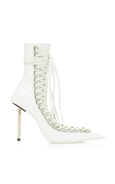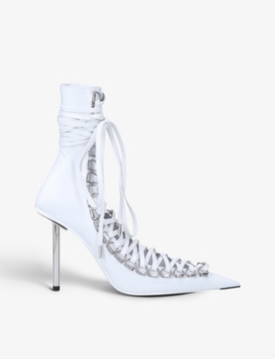Shop Balenciaga Womens Corset Stiletto Leather Booties In White from 400 stores starting at 1490. Featuring a pointed toe this pair has a lace-up front fastening an 80 mm heel height and silver tone eyelet details and heels. Size 40 great price.