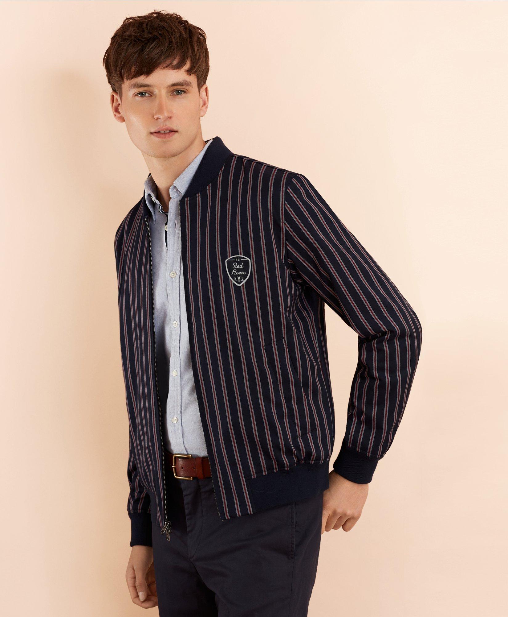 Check out our stripe bomber jacket selection for the very best in unique or custom handmade pieces from our clothing shops. JOIN LIFE Care for fiber. Featuring a high neck long sleeves welt pockets at the hip ribbed trims and zip-up front.